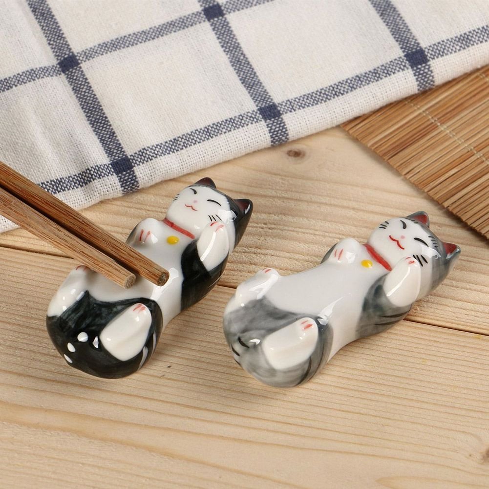 8Pcs Ceramics Creative Animal Chopstick Rest Lazy Cat Chopstick Spoon Fork Knife Holder