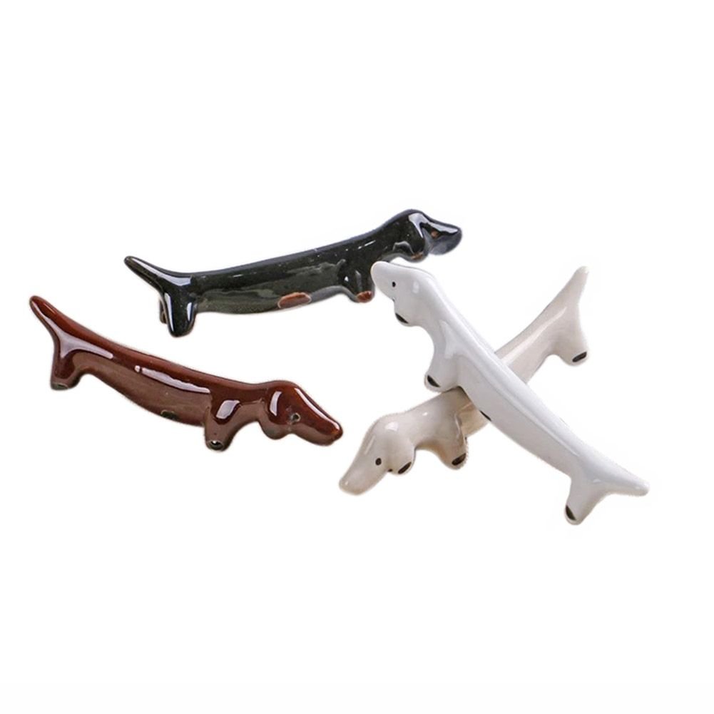 8Pcs Ceramics Dachshund Chopstick Holder Creative Animal Chopstick Spoon Fork Knife Rest