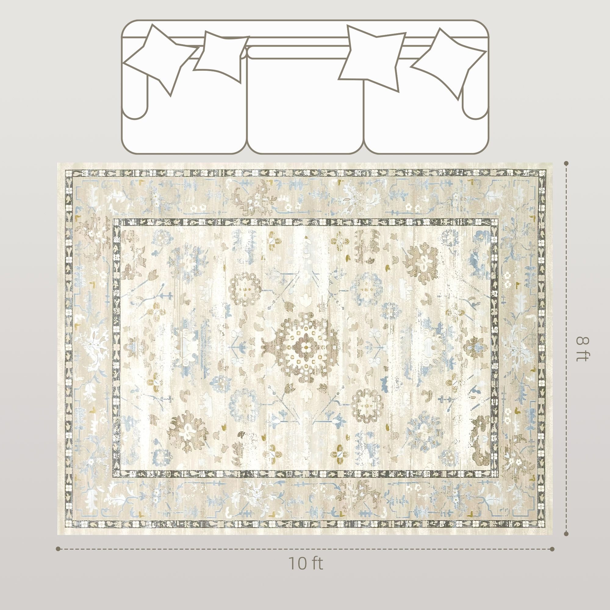 Enhance your space with the HOMCOM area rug, made from faux cashmere, for a plush, soft touch. A great rug for the bedroom or living room. This boho rug showcases intricate patterns in earthy tones and is fully machine washable for easy maintenance. Enjoy secure footing with integrated rug grippers that minimize slipping, making it a cozy and fashionable addition to any room.