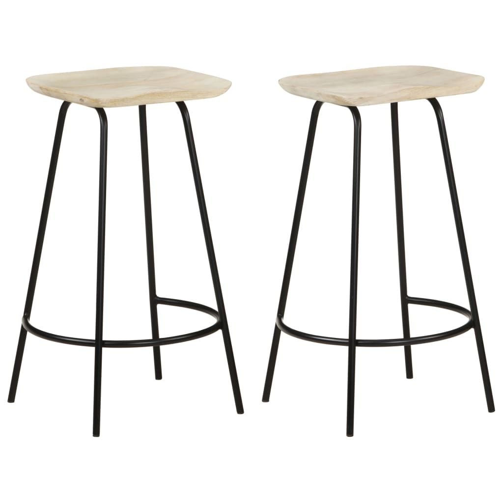This set of two Industrial Bar Stools is a striking mix of solid mango wood and black iron, giving you both style and utility. With their smooth finish and solid build, they easily spruce up any kitchen or dining area, offering great seating for casual meals and social gatherings.