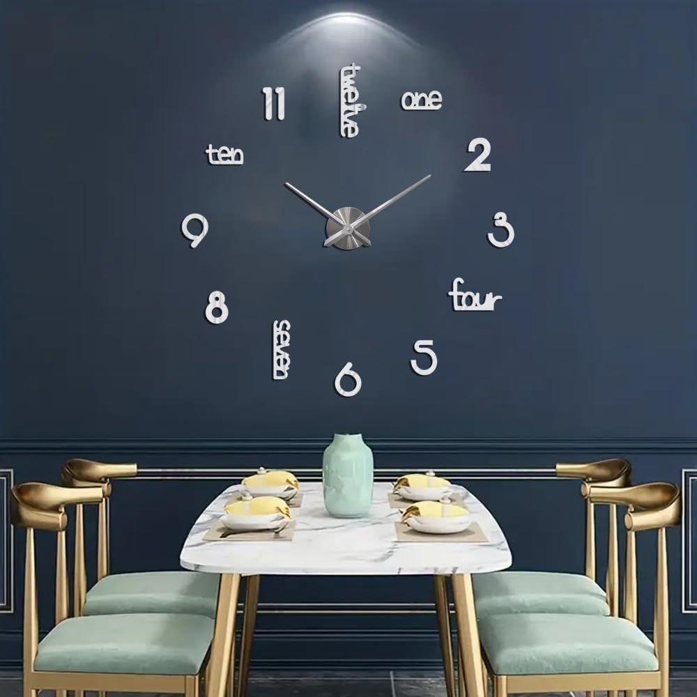 [Lucktime Wall Clocks For Living Room Decor]:Lucktime Wall Clock is a Modern Frameless Wall Clock, Decorative Wall Clock, Perfect for Decorating Fireplace, Living Room, Bedroom, Restaurant, Office. Comes in a Beautiful Gift Box Packaging, Making It the Perfect Holiday Gift for Family and Friends.[HIGH QUALITY,SAFE AND DURABLE MATERIAL]:The big wall clock numbers board is made of environmentally friendly EVA foam and acrylic. This big wall clock is durable, not easy to deform, easy to install and disassemble, and harmless to the human body. The nail will not damage the wall, suitable for a variety of walls.[Silent Wall Clock]:This large wall clock has passed CE and ROHS certification, very silent. Powered by AA (1.5V) battery, low power consumption, stable performance, put in your room will not affect your sleep, let You sleep more comfortably. (NOTE: AA batteries are not included)[ADJUSTABLE SIZE DIY LARGE WALL CLOCK]:The Lucktime 3D DIY large wall clock with an adjustable diameter of at least 70 cm, maximum 120 cm. You can design the position and size of the wall clock for living room decor according to your own preferences. Easy To Install,enjoy the happiness with your families or friends to finish the clock together, enjoy the fun of DIY.[Lucktime QUALITY GUARANTEE]:Every wall clock is manufactured with high standards , Strict quality inspection before out of warehouse,Aimed at pursuing high-quality living room décor.if you have any problems, please contact us at the first time and we will provide you with a satisfactory solution within 24 hours, thank you!