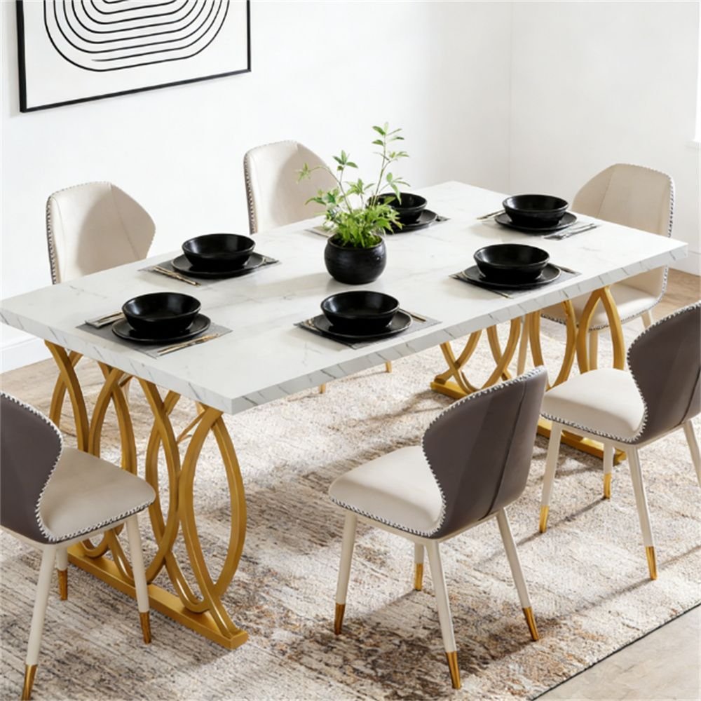 Exquisite Design - With a sophisticated white faux marble top and a stunning gold steel frame, this modern dining table brings a luxurious and timeless appeal to any space.