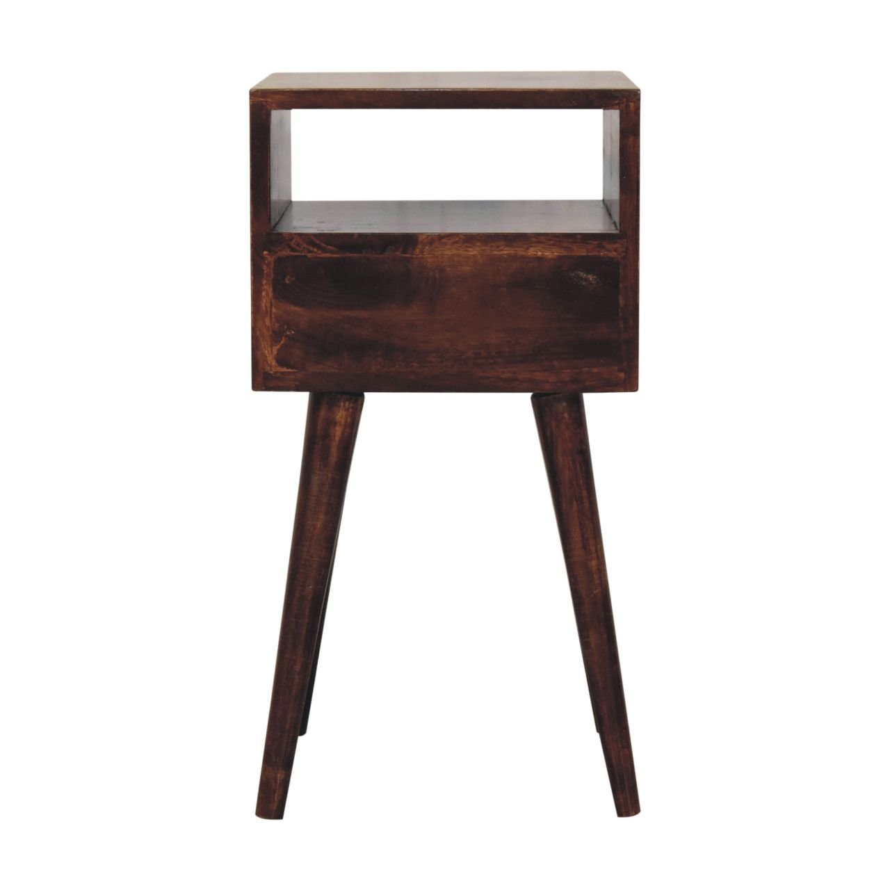 This beautifully designed bedside is constructed from 100% solid mango wood with a california walnut finish. Useful storage space is available with 1 drawer and 1 shelf with a decent sized table top to place any ornaments. Other features 4 Nordic wood style legs to give it that Nordic/modern style which will suit most homes.