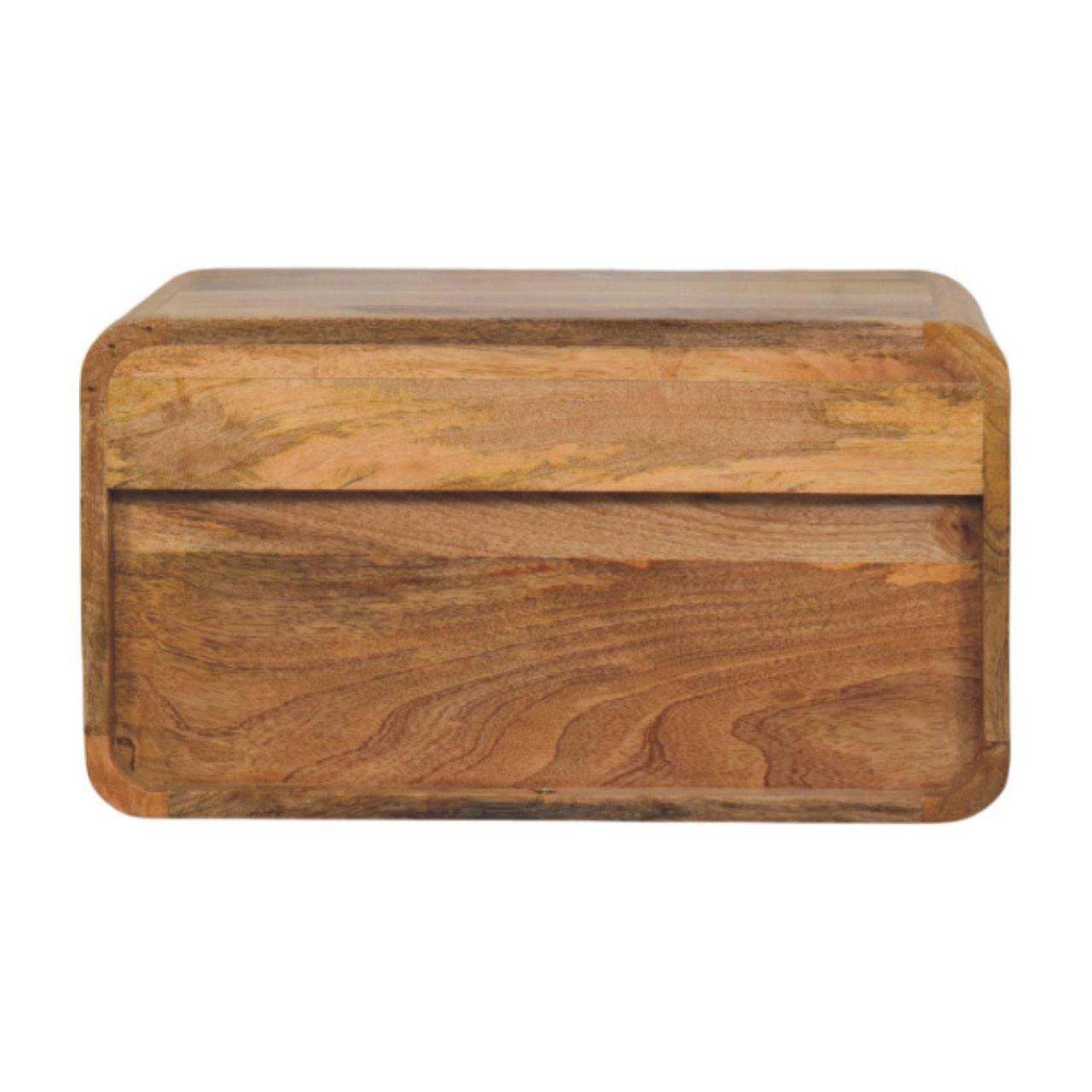 Blending modern minimalism with timeless craftsmanship, this wall-mounted nightstand is handcrafted from 100% Solid Mango Wood in an oak-ish finish. Its sleek, curved design features an open shelf for easy access to essentials and a compact drawer with a stylish brass knob for discreet storage. Perfect for saving floor space while adding warmth and elegance to bedrooms or living areas, this floating nightstand offers both functionality and aesthetic appeal. Designed for durability and sustainability, itÂ’s an ideal choice for contemporary interiors seeking a refined yet practical touch.