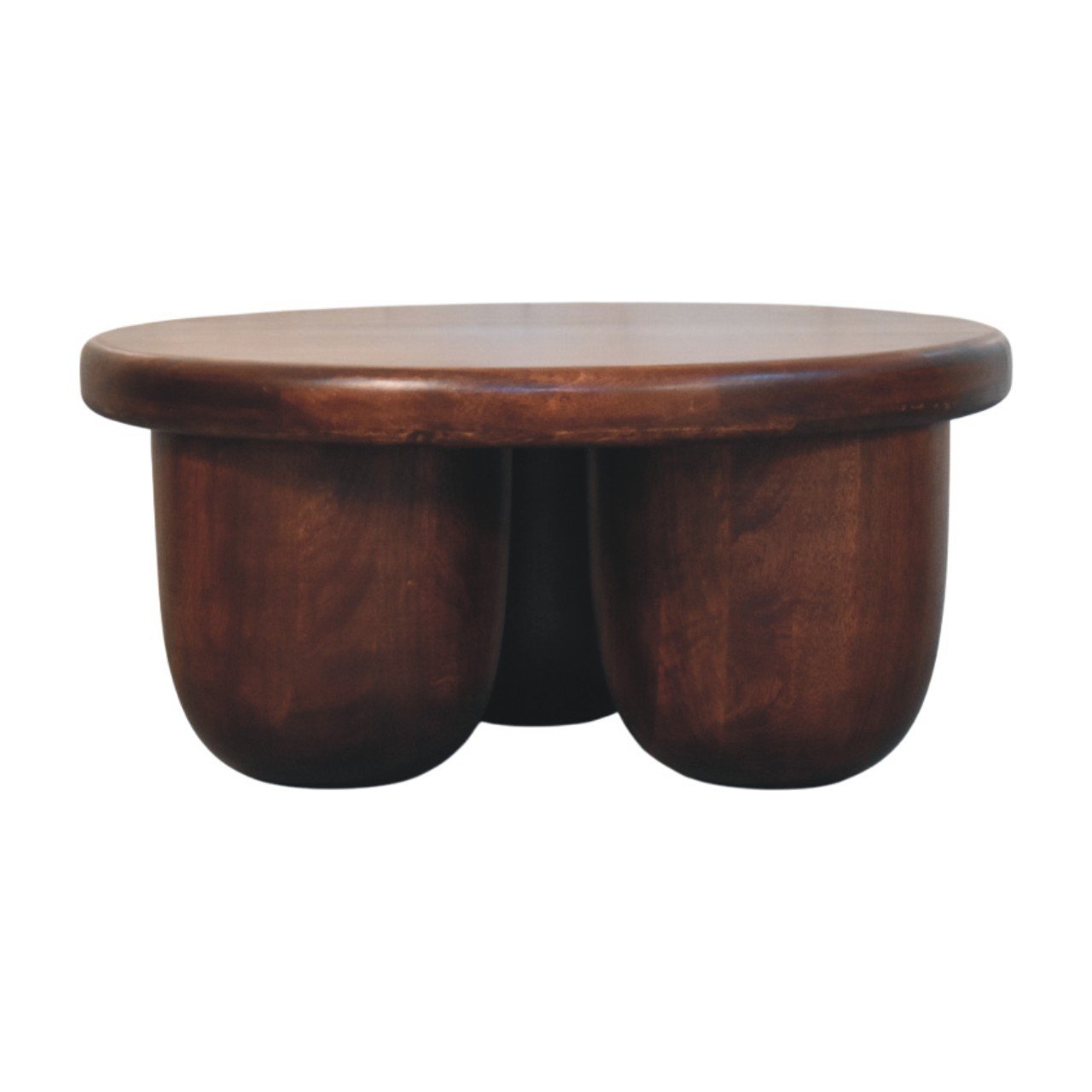 Introducing the Clara Sculpted Coffee Table, a bold and elegant centerpiece carved from 100% solid mango wood and finished in a rich Winewood Oak tone. Its softly contoured silhouette with rounded pillar-style legs brings a sculptural presence to any living space. Striking yet understated, this table seamlessly merges modern artistry with timeless craftsmanship—perfect for those who appreciate refined design with a contemporary edge.