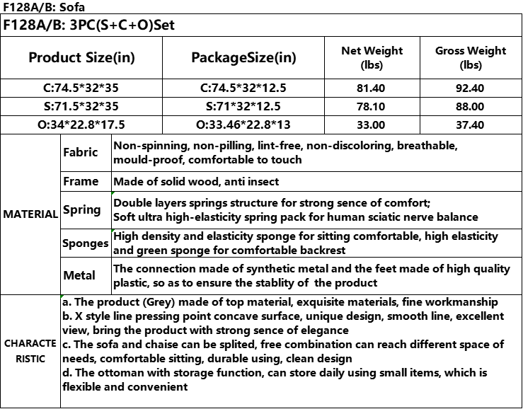 Home > Pickup Only--Grey Linen 3-Piece Couch Living Room Sofa Set