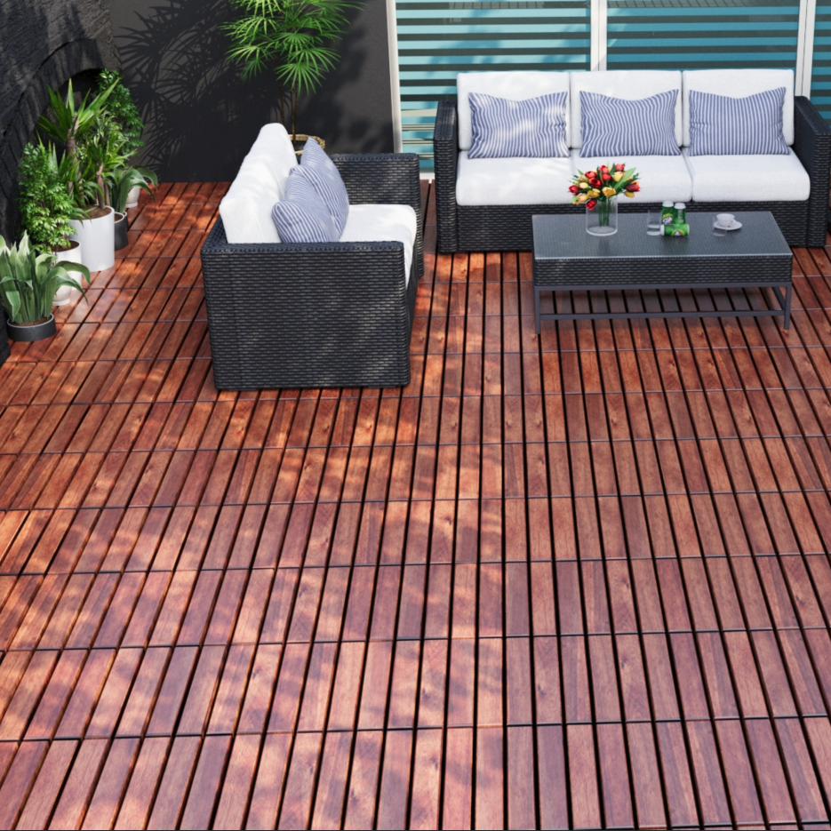 Home > Acacia Wood Interlocking Deck Tiles Striped Pattern, 20 PCS 12inch X 12inch Square Acacia Hardwood Outdoor Flooring For Patio, Bancony, Pool Side