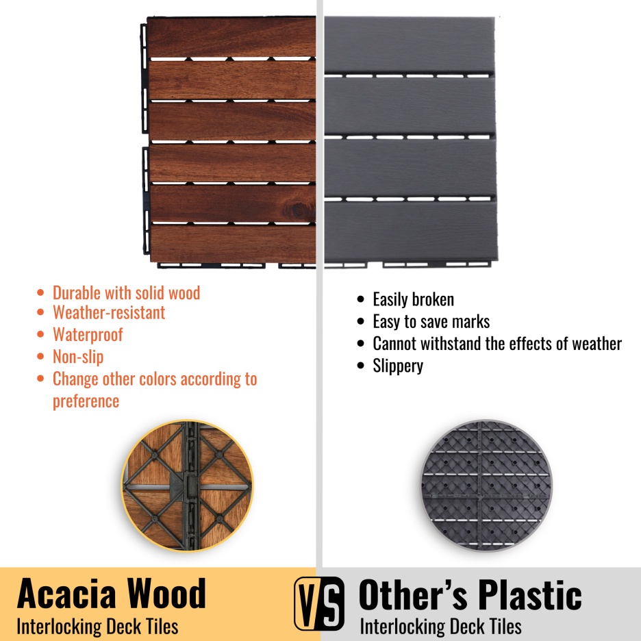 Product Name:Acacia Wood Interlocking Deck Tiles Striped Pattern, 20 PCS 12" x 12" Square Acacia Hardwood Outdoor Flooring for Patio, Bancony, Pool Side,...