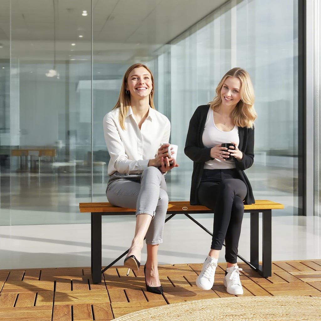 2-Person Backless Garden Bench For Porch, Park, Teak