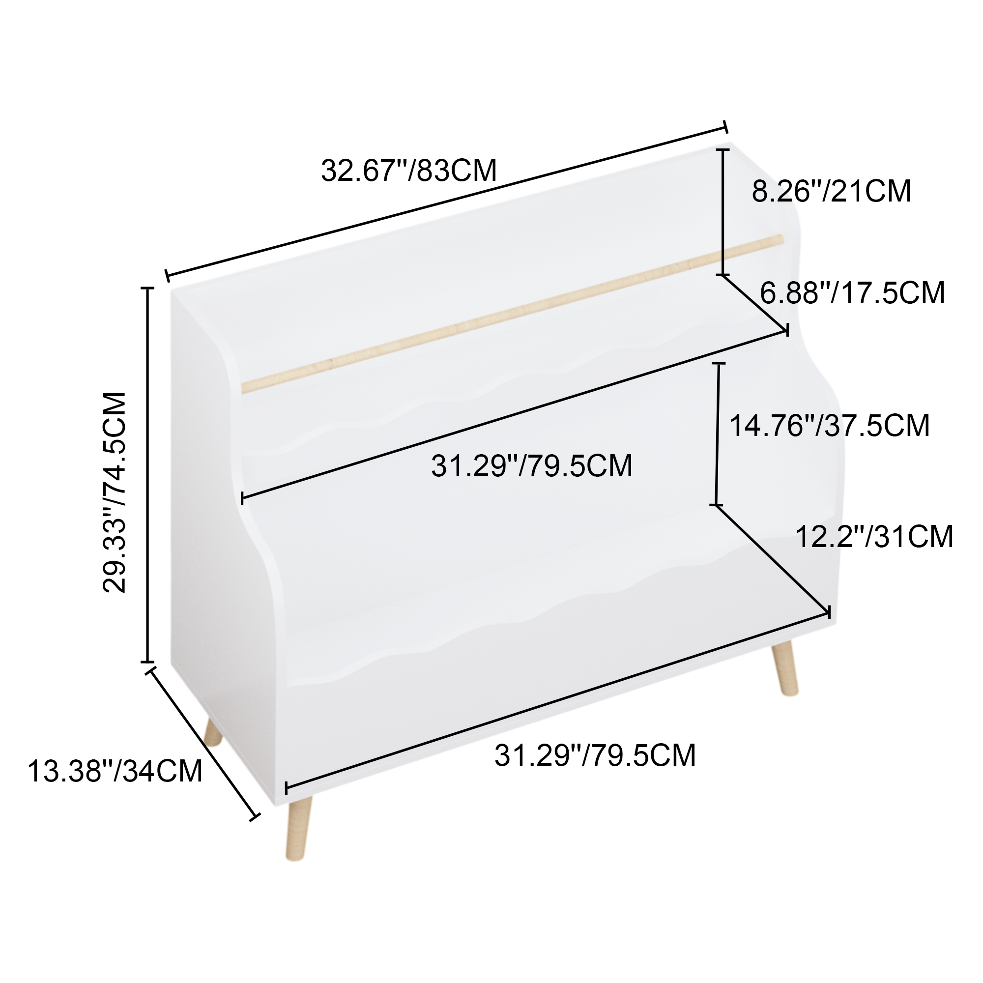 • Provides ample storage space for children's books, toys, and small decorative items, helping to keep the room organized.