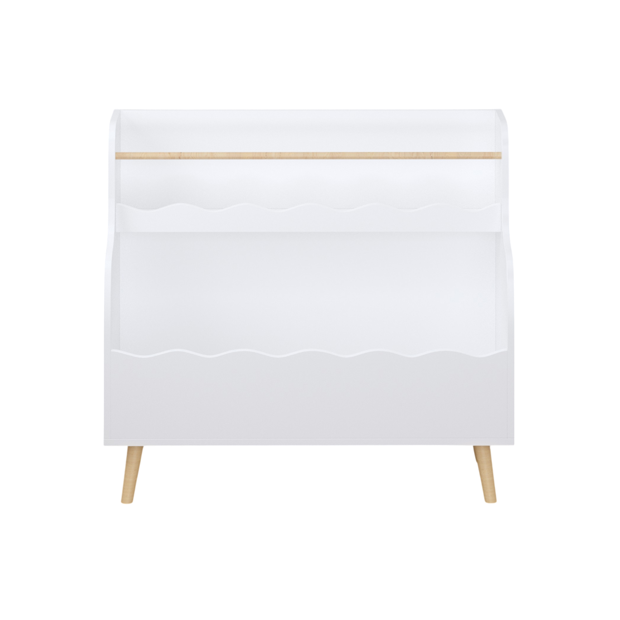 • This children's bookshelf features a charming white finish with wavy - edged compartments, giving it a playful and cute look.