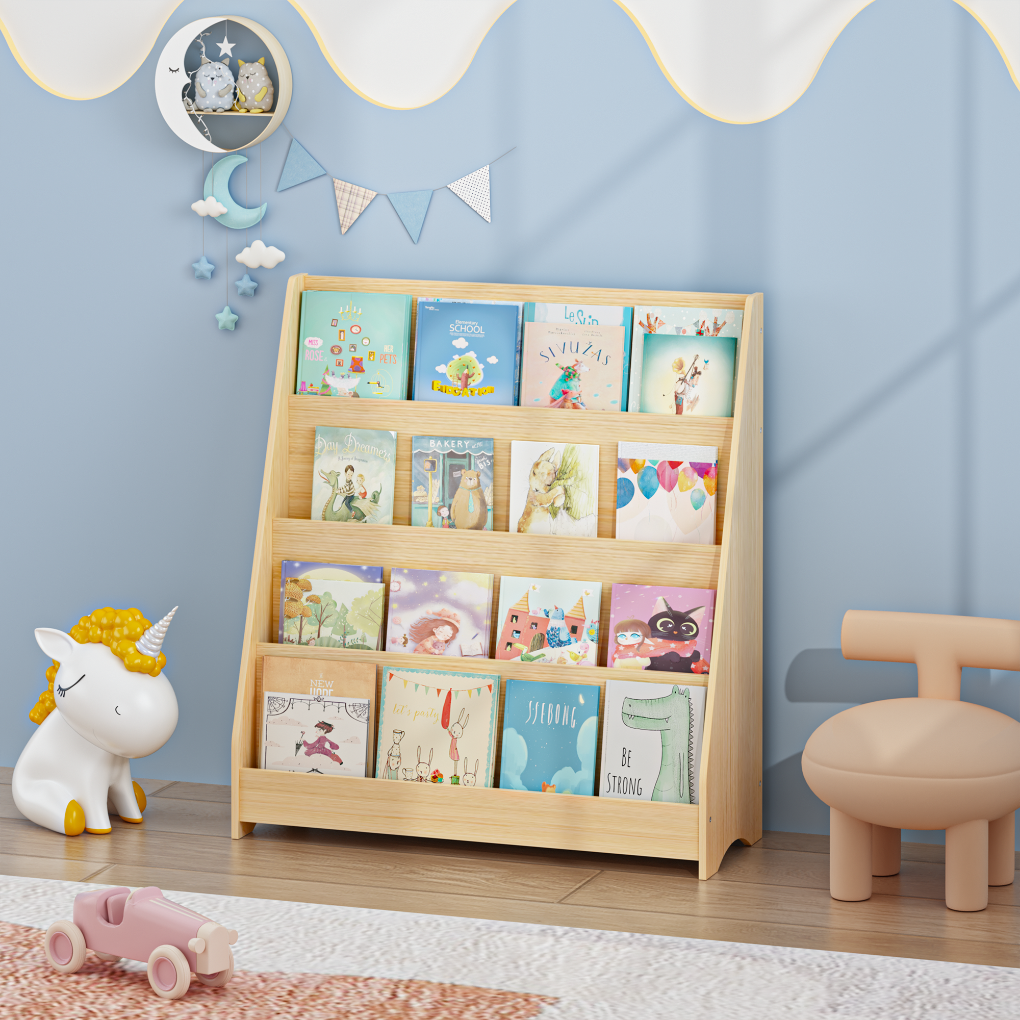 Home > 4-Tier Kids Bookshelf, Toddler Book Display Shelves, Helps Keep Bedrooms, Playrooms, And Classrooms Organized,Natural