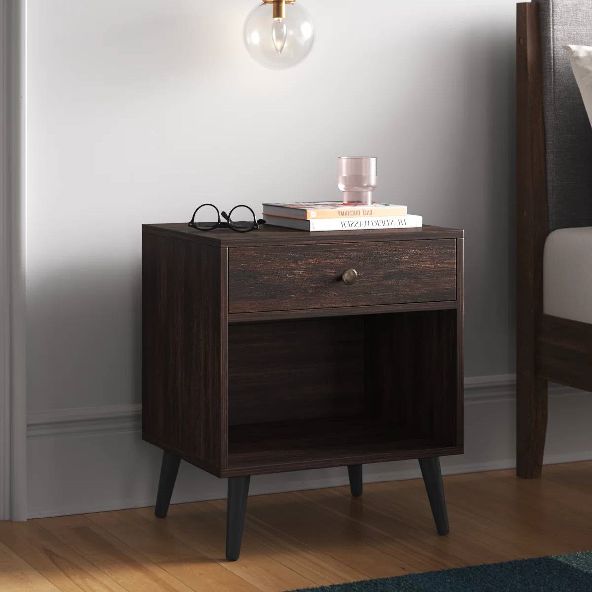 Mid-Century Modern 1-Drawer Nightstand End Table in Dark Brown Wood Finish Mid-Century Modern 1-Drawer Nightstand End Table in Dark Brown Wood Finish Mid-Century Modern 1-Drawer Nightstand End Table in Dark Brown Wood Finish Mid-Century Modern 1-Drawer Nightstand End Table in Dark Brown Wood Finish Mid-Century Modern 1-Drawer Nightstand End Table in Dark Brown Wood Finish