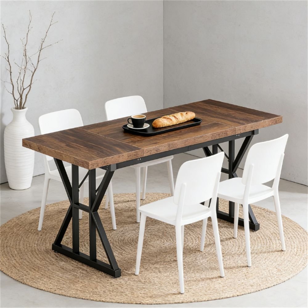 Wooden dining table, rectangular dining table with metal legs, kitchen dining table, suitable for living room and dining room Wooden dining table, rectangular dining table with metal legs, kitchen dining table, suitable for living room and dining room Wooden dining table, rectangular dining table with metal legs, kitchen dining table, suitable for living room and dining room